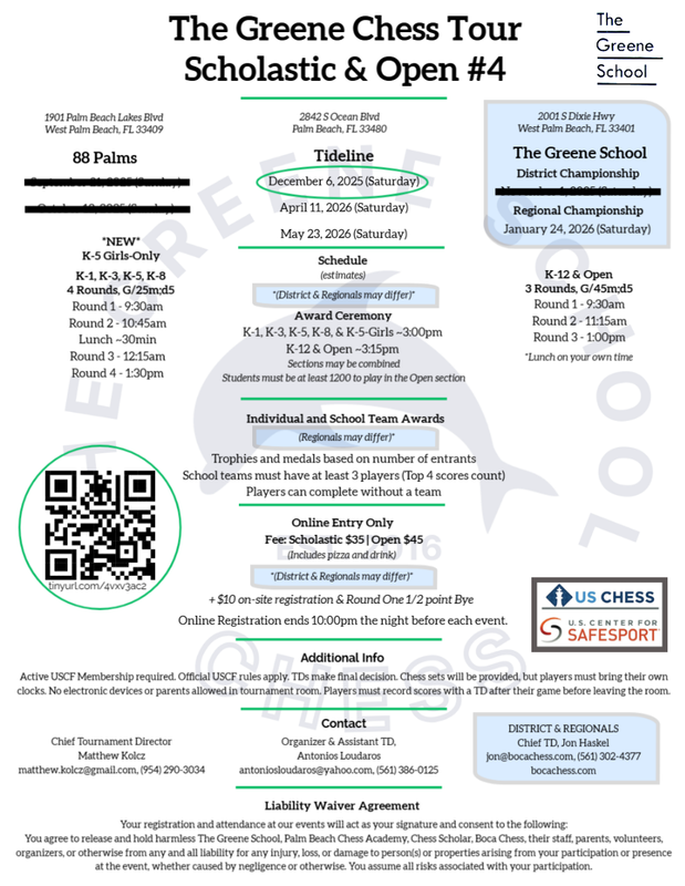 : The Greene Chess Tour #4 | Scholastic & Open @ Tideline